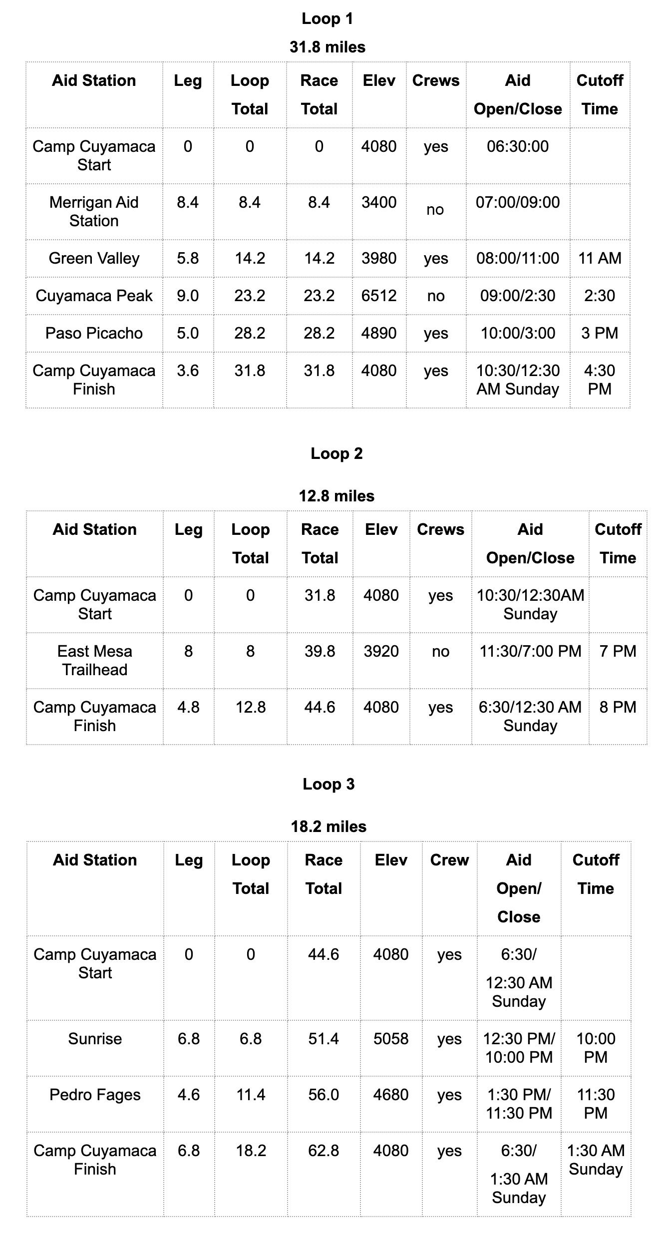 Aid Stations and Cutoffs