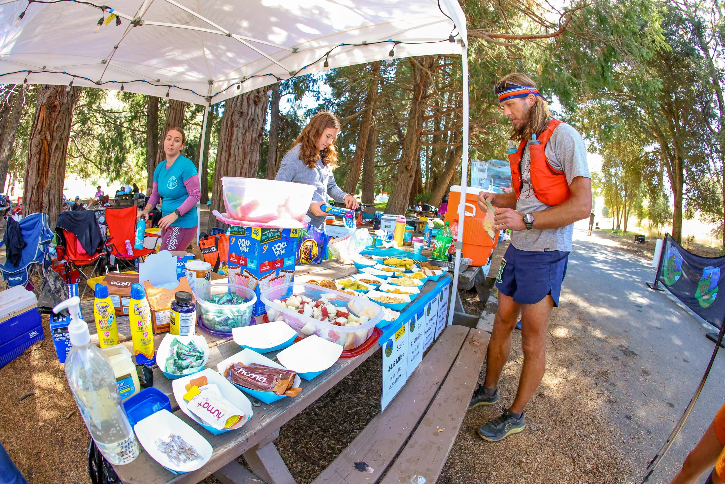 Aid Stations: Aid stations will have as a minimum: water, Tailwind Nutrition Sport Drink, Huma Gels, fruit 🍌, salty foods/chips, sweets (cookies, candy, etc), and ice. Later aid stations serve hot food and broth.